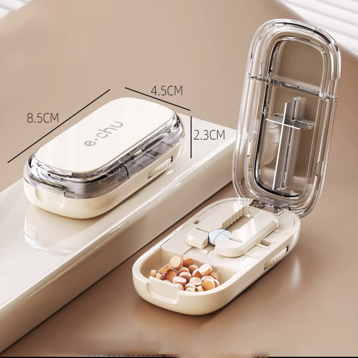 【Compact & Travel Friendly】This portable pill cutter is lightweight and small (3.3 x 1.8 x 0.9 inches), making it easy to carry in your handbag, backpack, or travel bag. It’s the perfect on-the-go solution, whether you're at home, the office, or traveling