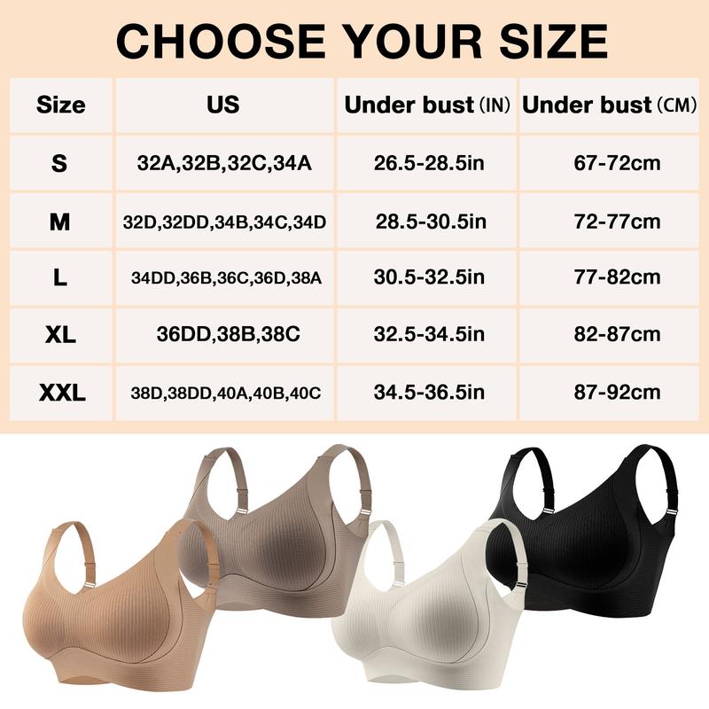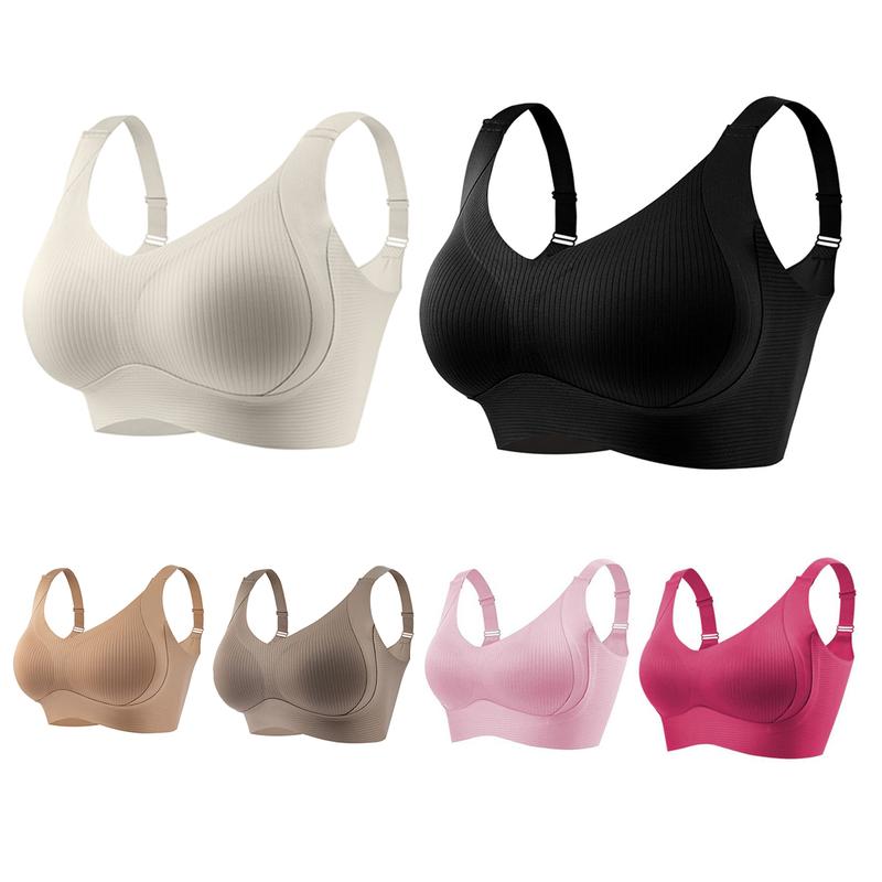 3-Pack Women's Solid Color Four-Row Hook Adjustable Wire-Free Bra