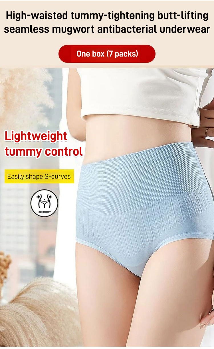 7 Pcs High Waist Tummy Control Women's Underwear Seamless High Elastic Cotton Antibacterial Crotch