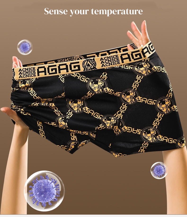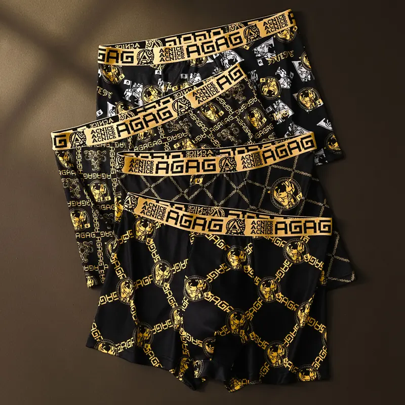 4 Pcs Men's Black Gold Luxury Breathable Boxer Briefs